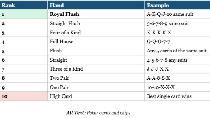 The Simple Truth: Learn the 10 poker hands and you can start playing with confidence. Poker looks complex, but the basics take minutes to understand.